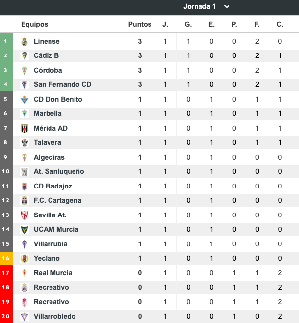 Tras haber disputado todos los partidos de la primera jornada del Grupo IV de la Segunda División B de la temporada 2019/20 la Real Balompédica Linense dormirá esta noche como líder de la clasificación.