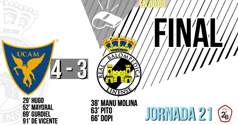 La Real Balompédica Linense cayo en el último instante este domingo (4-3) en un partido intenso ante el Universidad Católica de Murcia C.F. (UCAM Murcia C.F.)