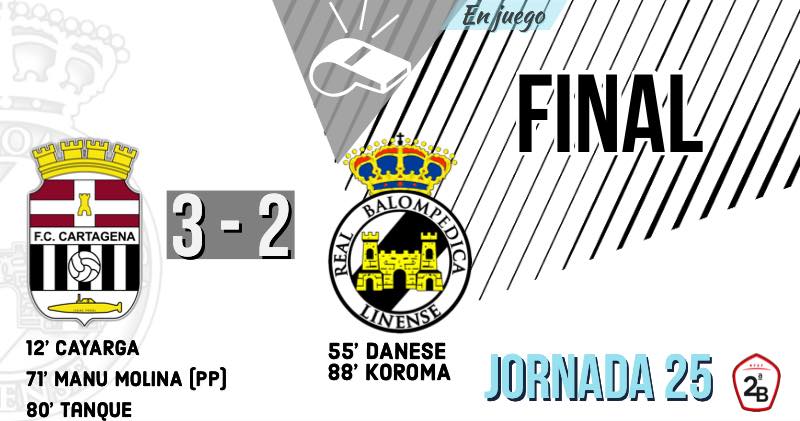 La Real Balompédica Linense ha perdido por tres goles a dos a el FC Cartagena en un partido muy disputado en Cartagonova en la Jornada 25 del Grupo IV de la Segunda División B.